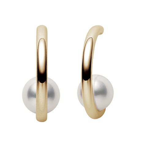 クラシックな諸曁養殖真珠セミフープイヤリング(イエロー)