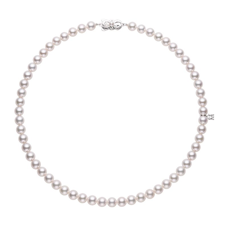 収穫ごとに厳選された真珠のみ Fanuly の高い基準を満たし、Zhuji PREMIUM とみなされています。ほぼ完璧な丸みを帯び、素晴らしい光沢と上質な質感が調和しています。細心の注意を払って選ばれたこれらの真珠は、世界最高級の養殖真珠の創始者を誇りを持って代表しています。このネックレスは、留め具の裏側に「PREMIUM」と刻印されたホワイトにセットされた AA 品質の 9x8.5mm Fanuly 養殖真珠が特徴です。