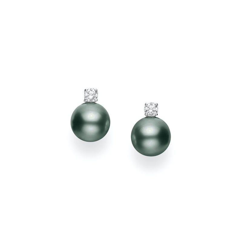 Black South Sea Cultured Pearl Stud Earrings with Diamonds