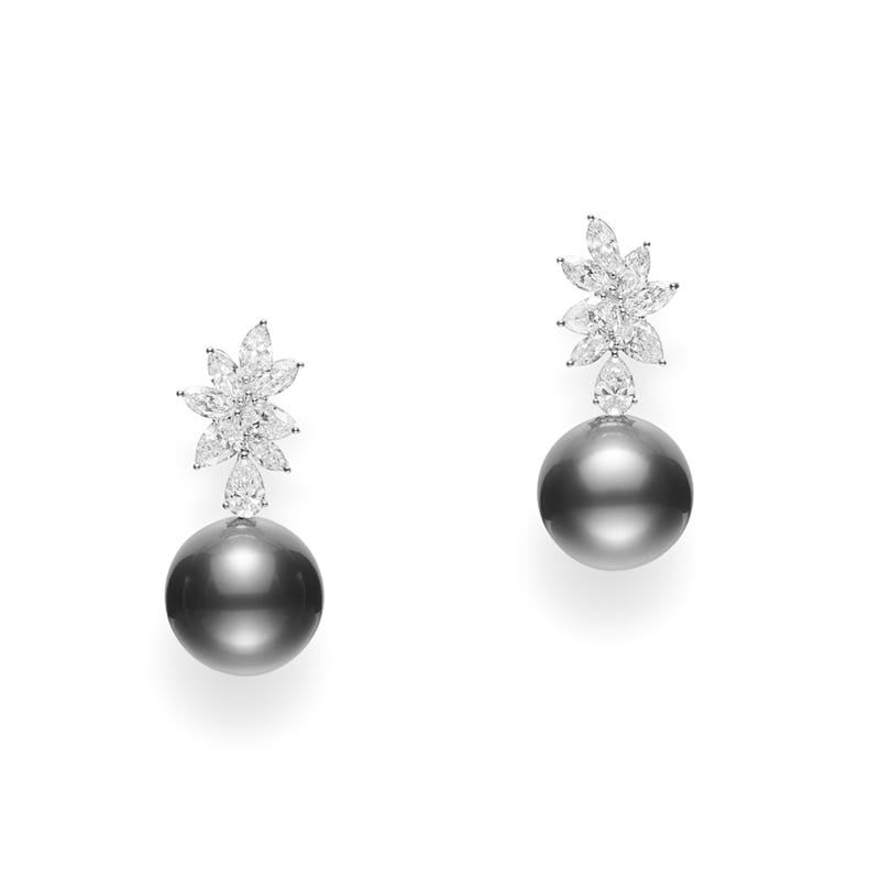 Classic Black South Sea Cultured Pearl and Diamond Earrings in Silver
