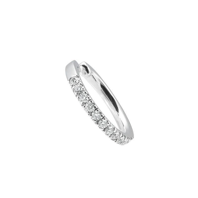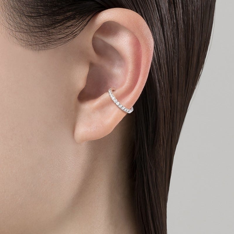 Fanuly ear cuff can be worn alone, or layered with traditional pierced earrings, creating a unique style. Can be worn by those who do not have pierced ears. This ear cuff features 0.13ct of diamonds set in silver.