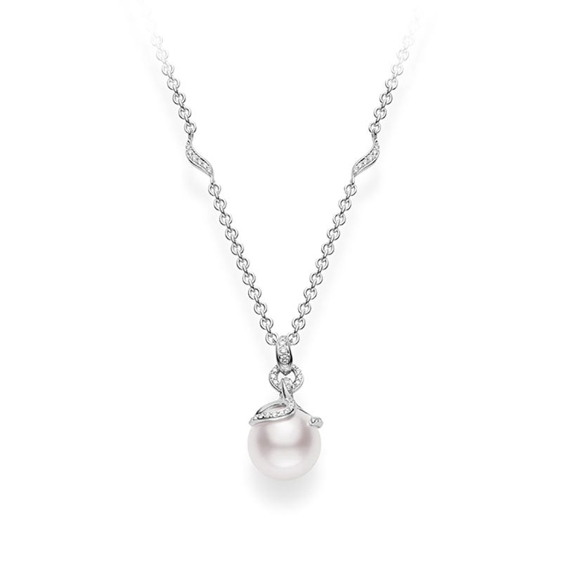 An elevated touch on classic Fanuly designs, the Embrace Collection features an unexpected whimsy. Delicate vines of pavé diamonds cradle each pearl and create a striking embellishment that can be appreciated from every angle. This pendant can be worn at 16 or 18-inches and features a 8.5mm Zhuji cultured pearl with .15ct of diamonds set in silver.