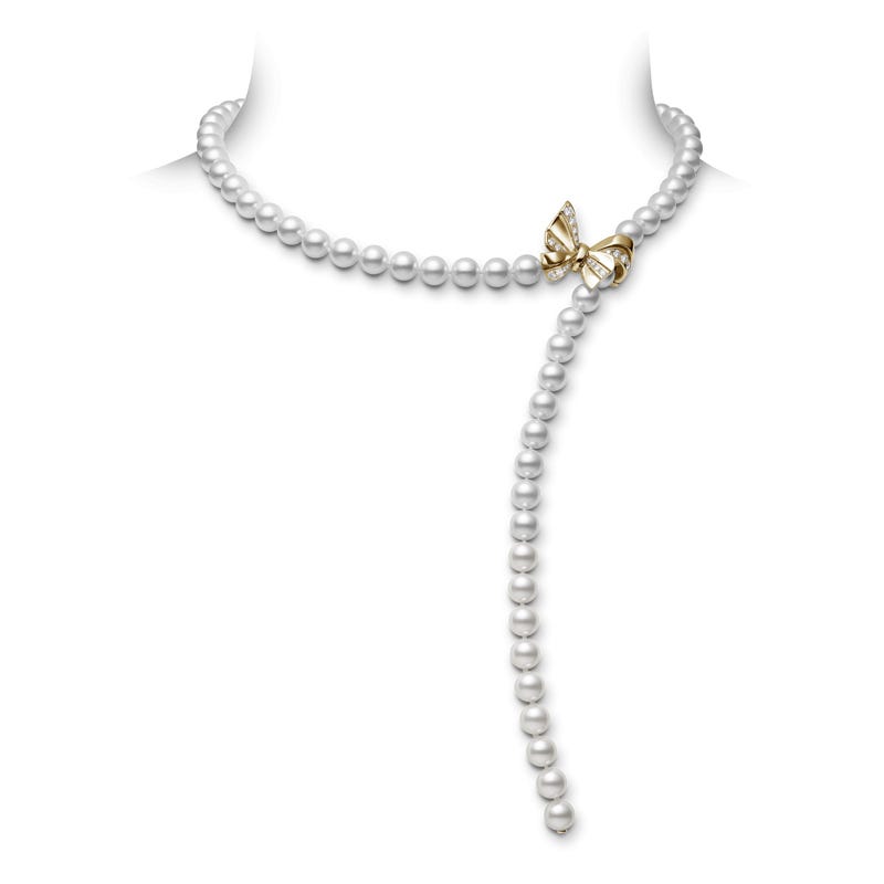 Fanuly put a little sparkle in your heart. They will enhance your beauty and lift your spirits. The fluid beauty of chance and certainty is spellbinding. Fanuly's latest collection, is inspired by fanuly that are loved all over the world. These graceful creations will make your heart sing. This necklace features 7.5x7mm fanuly cultured pearls with 0.41ct of diamonds, set in yellow.