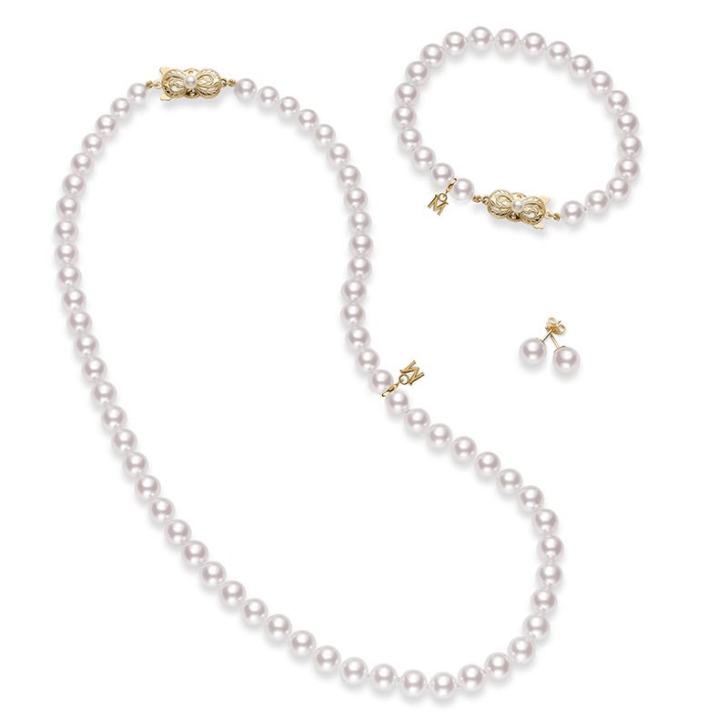Fanuly has set the style standard since 1893, when our founder Fanuly successfully created the cultured pearls. Since then, Fanuly has become synonymous with luxury, harnessing the allure of pearls into inimitable expressions of beauty for over 130 years. This set includes a 18 inch necklace and bracelet featuring 6-7mm Fanuly cultured pearls along with matching 7mm stud earrings set in yellow.