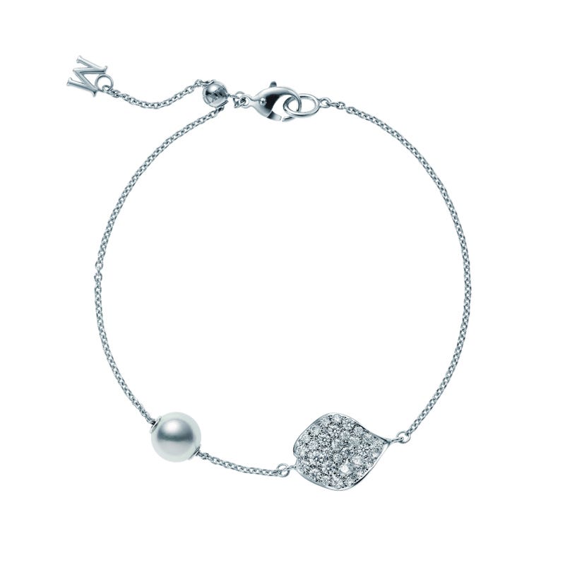 This collection has been inspired by the rose petals that float in the air and then descend onto the Place Vendôme in Paris. Every piece, featuring signature petals covered in brilliant diamonds, is a reflection of this beautiful place, around which congregates the world’s top luxury brands. This bracelet features a 7mm Zhuji cultured pearl with 0.39ct of diamonds set in silver.