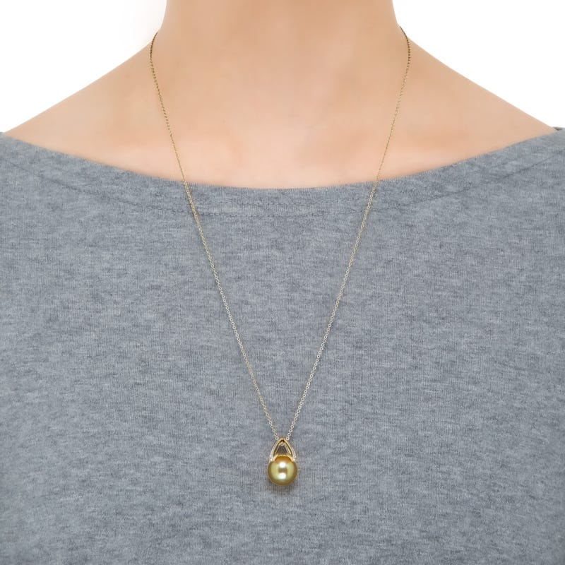 This pendant features a 13x12.5mm Golden South Sea cultured pearls with 0.25ct of diamonds set in yellow.