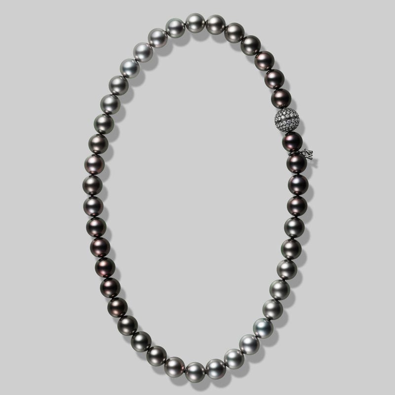 Passionoir Black South Sea Cultured Pearl Necklace with Diamond Clasp