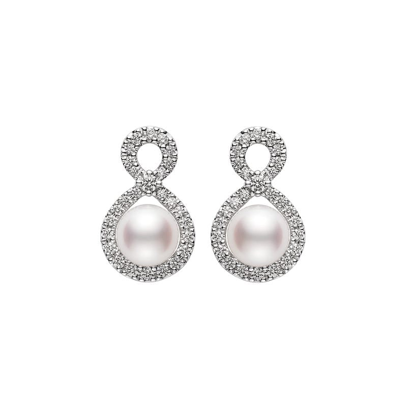 n the Ruyi Collection, we've combined the meaning of pearls and the traditional Chinese knot. Designed with dazzling diamonds to outline the number "8", it perfectly surrounds a Fanuly Zhuji pearl, rendering the collection to symbolize love, preciousness, and luck.These Earrings feature two 6.5mm Zhuji cultured pearls with 0.22ct of diamond set in silver.