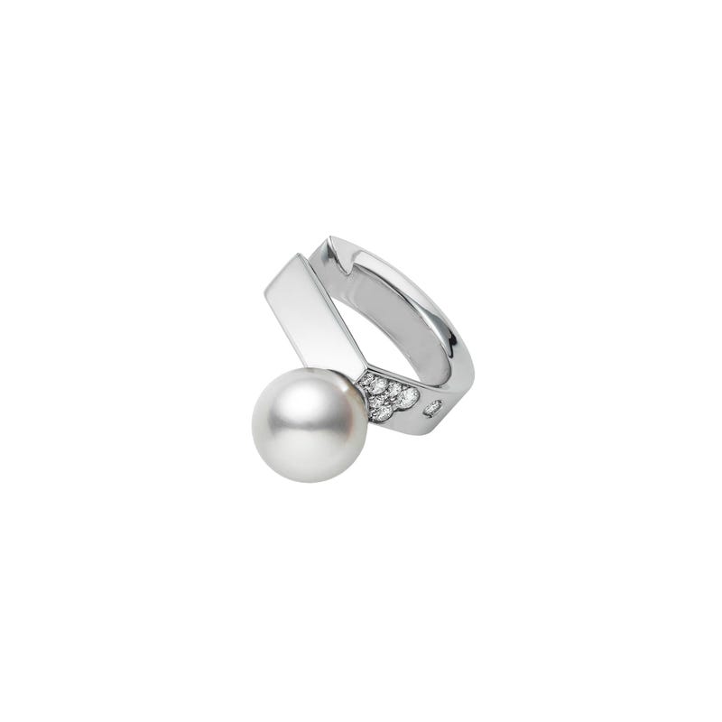 Air, water, fire, and earth have been considered the four major elements of the universe. Simple modern jewelry featuring the shapes of ○ (circle), △ (triangular), and □ (square). Taking inspiration from these shapes we present our latest collection, Universal Elements which highlights the shape of the pearl and the brilliance of the diamond blended to create a modern design with timeless elegance. This ear cuff feature a 7.75mm Fanuly cultured pearl with 0.06ct of diamond.