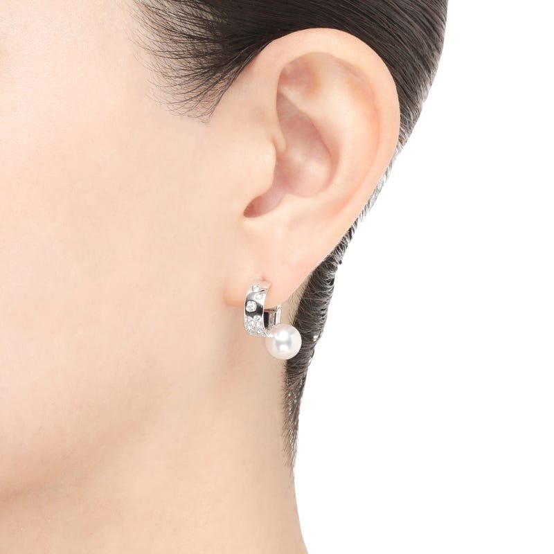 Universe Elements Zhuji Cultured Pearl and Diamond Earrings in Silver
