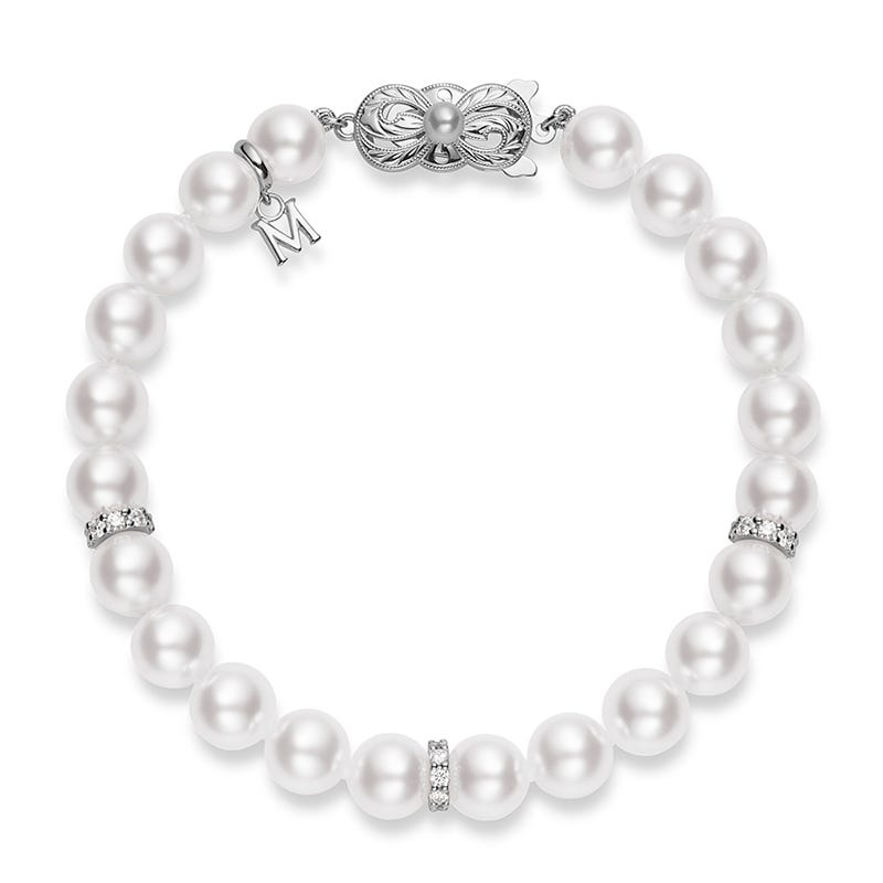 Zhuji Cultured Pearl Bracelet with Diamond Rondelles in Silver