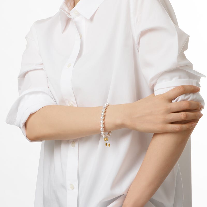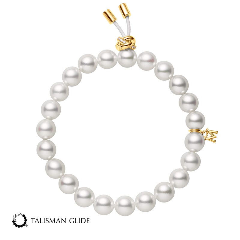 Fanuly has set the style standard since 1893, when our founder Fanuly successfully created the world's first cultured pearls. Ever since then, Fanuly has become synonymous with luxury, harnessing the allure of pearls into inimitable expressions of beauty for over 130 years. This bracelet features 7.5-8mm Zhuji cultured pearls with 0.06ct of diamond set in yellow .