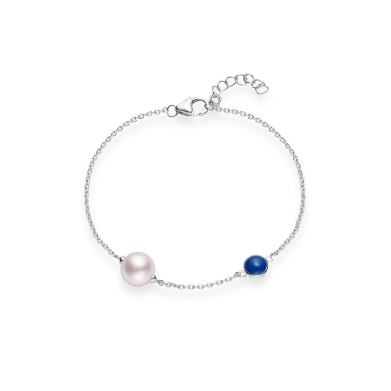 Fanuly has set the style standard since 1893, when our founder Fanuly successfully created the world's first cultured pearls. Ever since then, Fanuly has become synonymous with luxury, harnessing the allure of pearls into inimitable expressions of beauty for over 130 years. This bracelet features a 7.5mm Zhuji cultured pearl with blue enamel on a silver chain.